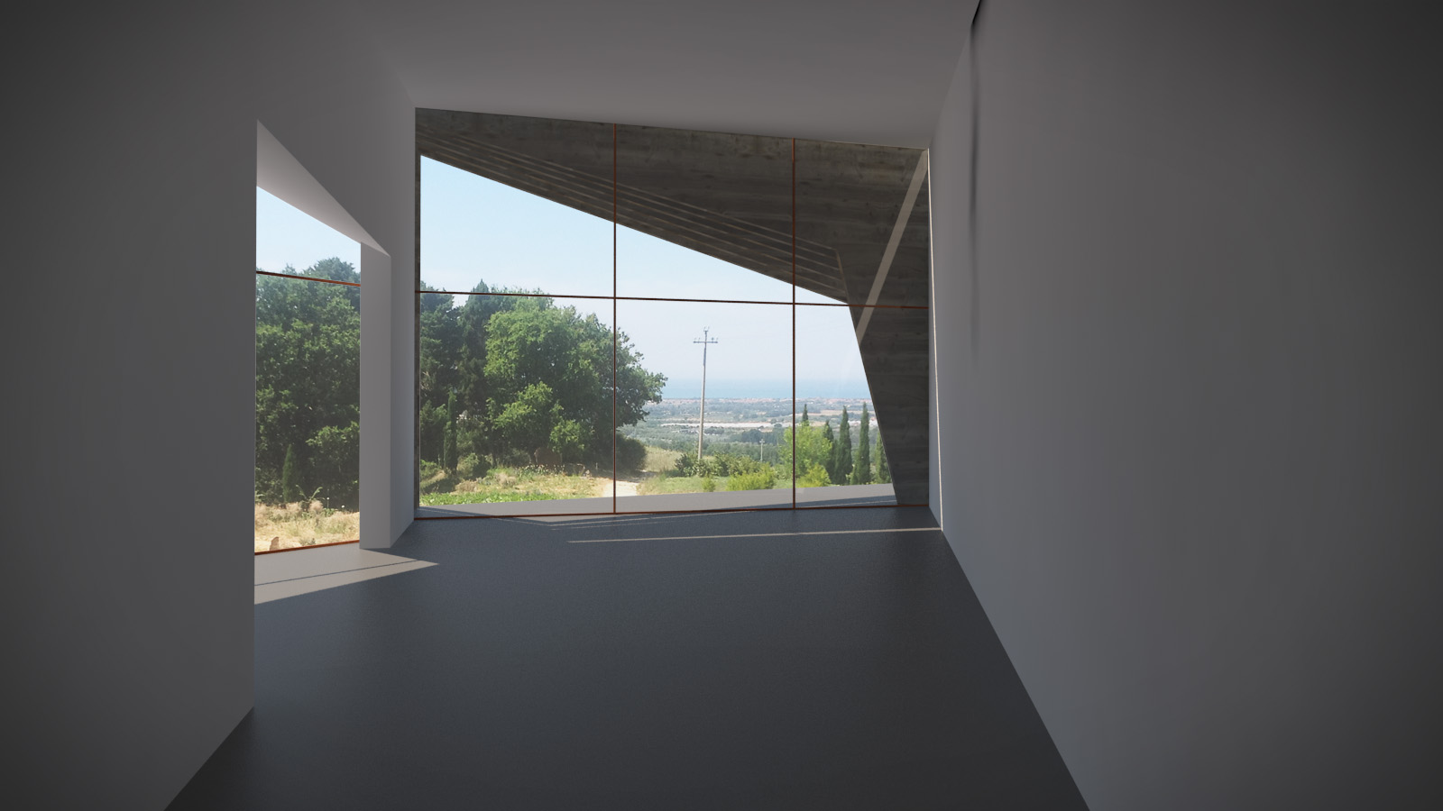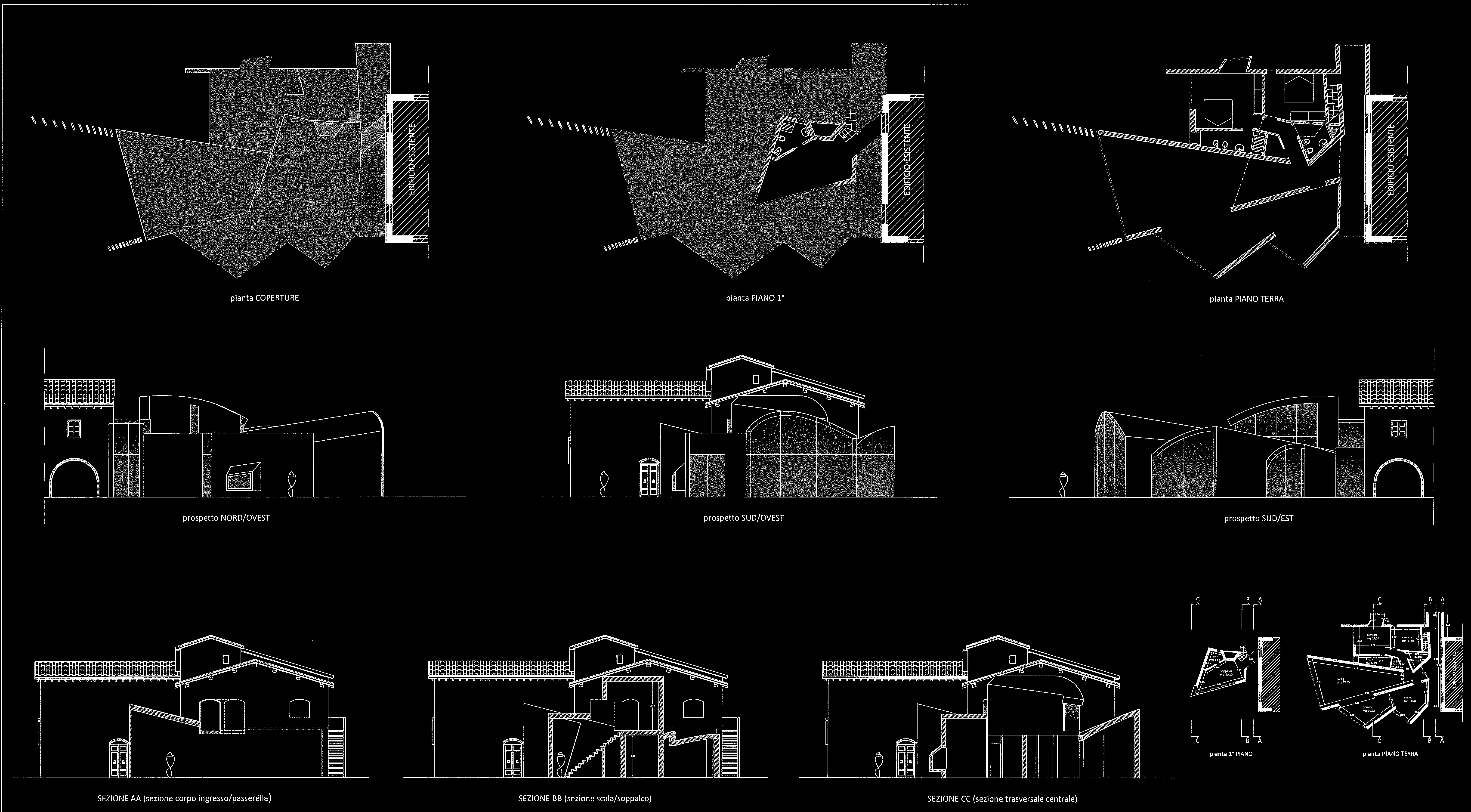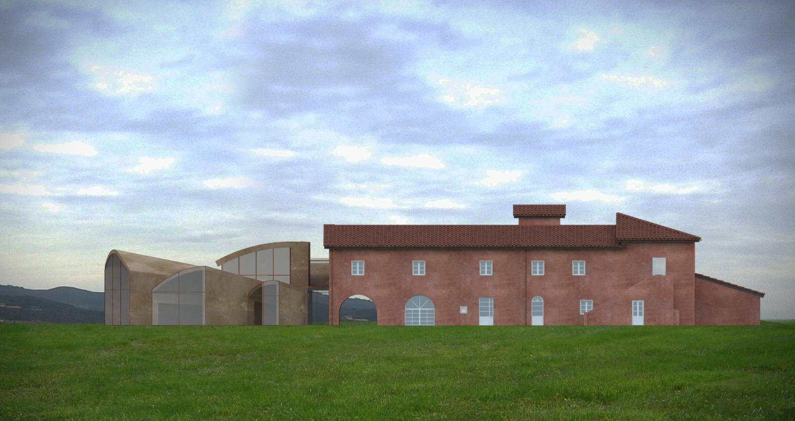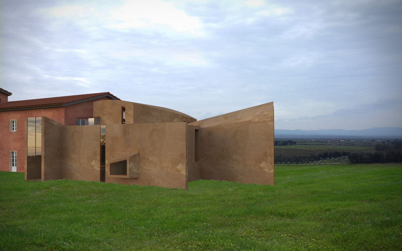 Un'area completamente aperta e al culmine di una dolce collina che scruta il Tirreno in lontananza, accoglie una tenuta agricola appena riconvertita ad accoglienza di alto livello. I proprietari, intendono ritirarsi in un ambiente "altro" che evidentemente stacchi dalla compattezza rigorosa del volume storico. Ecco pertanto nascere, riprendendo le linee classiche dei paesaggi toscani ricchi di linee oblique e disassamenti davanti/dietro, il progetto della nuova residenza padronale. Intorno ad un ambiente centrale di vita, si affiancano gli altri ambienti essenziali, mentre il collegamento tra l'esistente ed il nuovo viene trattato con strutture a vetro tali da non impedire la visione della struttura muraria originale: quasi una "galleria" trasparente che permette scorci visivi inusuali verso ogni lato e dando slancio e importanza all'ingresso. Forme e volumi contrastanti ma che non intaccano ma anzi gratificano il vissuto consolidato dei luoghi.