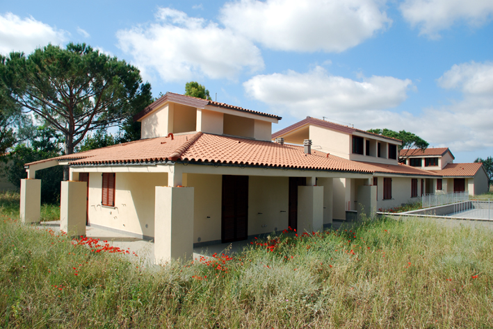 Demolizione di una struttura poderale e successiva ricostruzione con la realizzazione di 12 appartamenti indipendenti, ognuno dotato di giardino e posto auto. Il tema era quello di riuscire a progettare il nuovo insediamento con un disegno planimetrico che tenesse conto di una buona distribuzione planimetrica con un livello di aggregazione abitativa non dispersiva e cercando di mantenere intatte tutte le importanti alberature esistenti e realizzando al contempo la ricostruzione dei fabbricati su parte del sedime precedentemente occupato dalle strutture esistenti, vincolo imposto dai regolamenti locali. Architettonicamente si è optato per la realizzazione di fabbricati bassi con sviluppo prevalente a piano terra, con alcuni elementi volumetrici al piano primo al fine di non appiattire eccessivamente i fabbricati e rendendoli affini alle abitazioni poderali presenti in zona. L'uso di intonaci tradizionali, coperture in cotto, infissi in legno e colori terrosi è stato imposto dagli attuali regolamenti locali. Progettazione architettonica e direzione lavori.