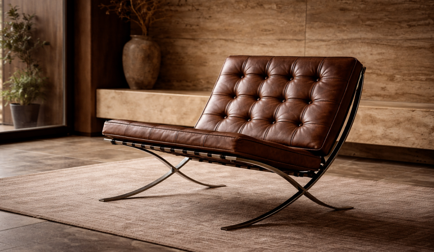 Lo stesso principio è evidente anche in uno degli oggetti più celebri progettati da Mies: la Barcelona Chair, disegnata nel 1929 per il Padiglione tedesco all’International Exposition of Barcelona.