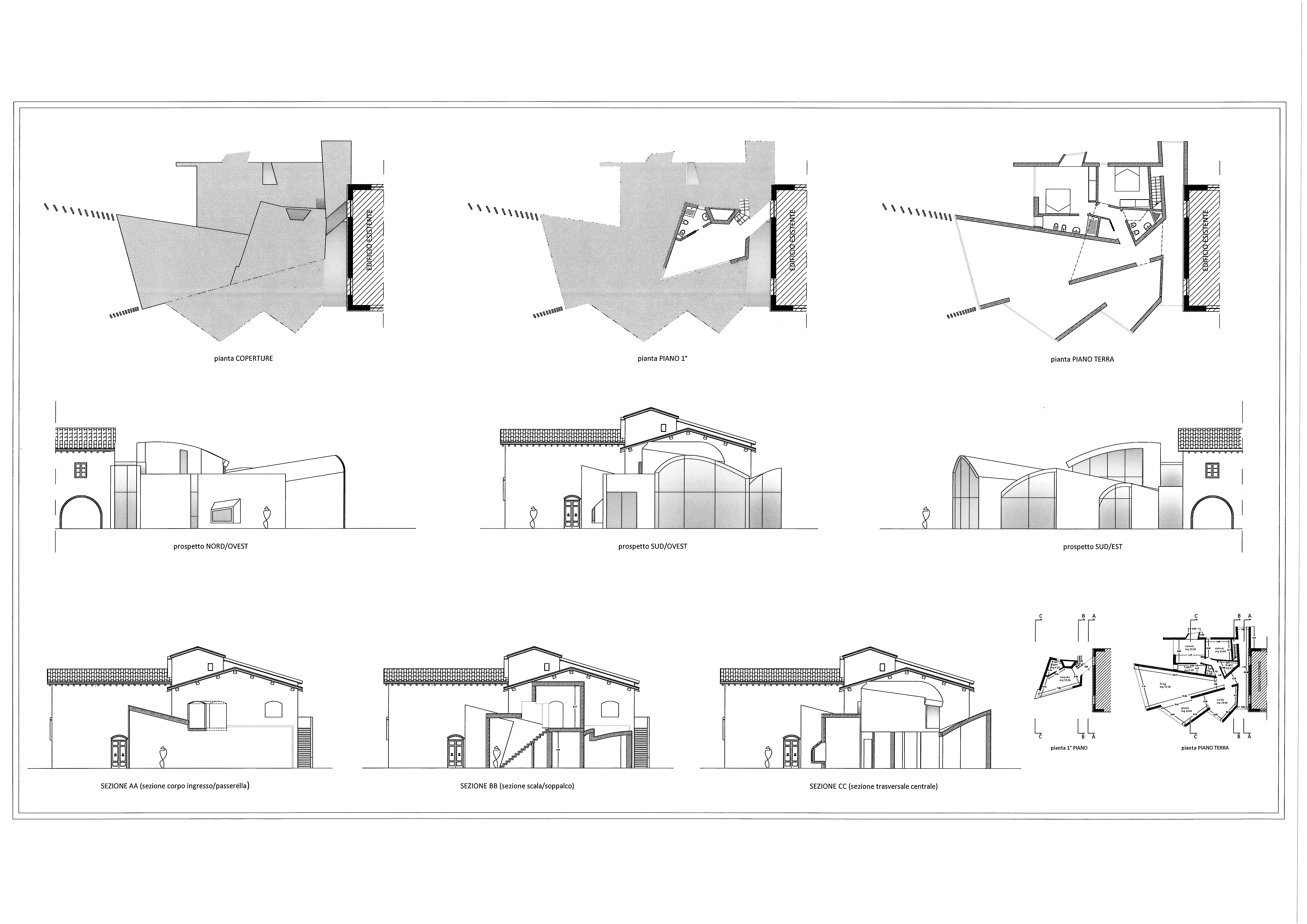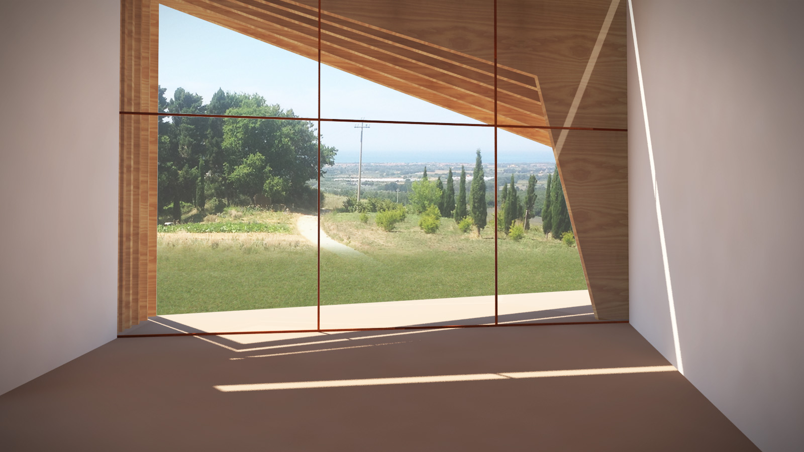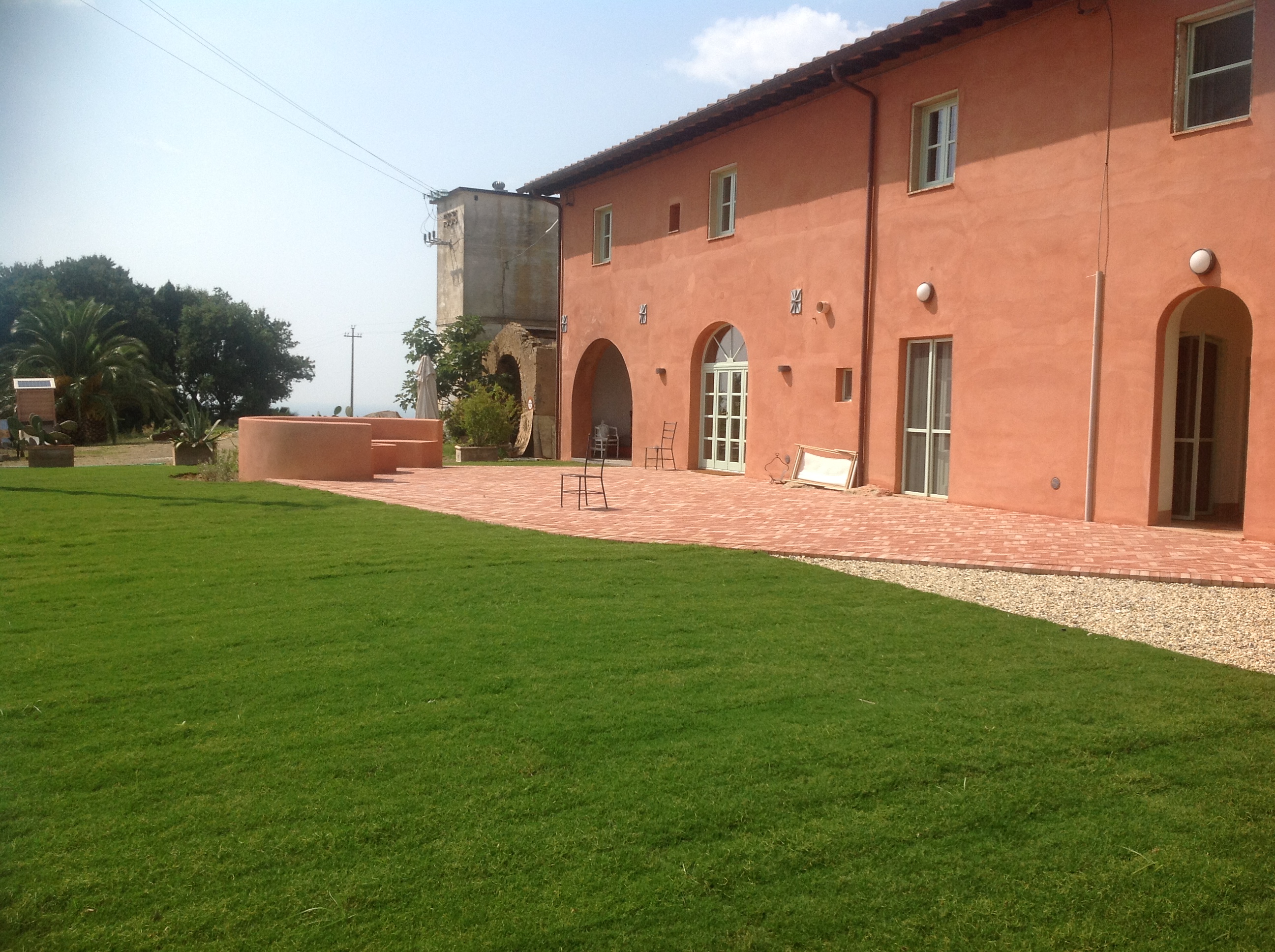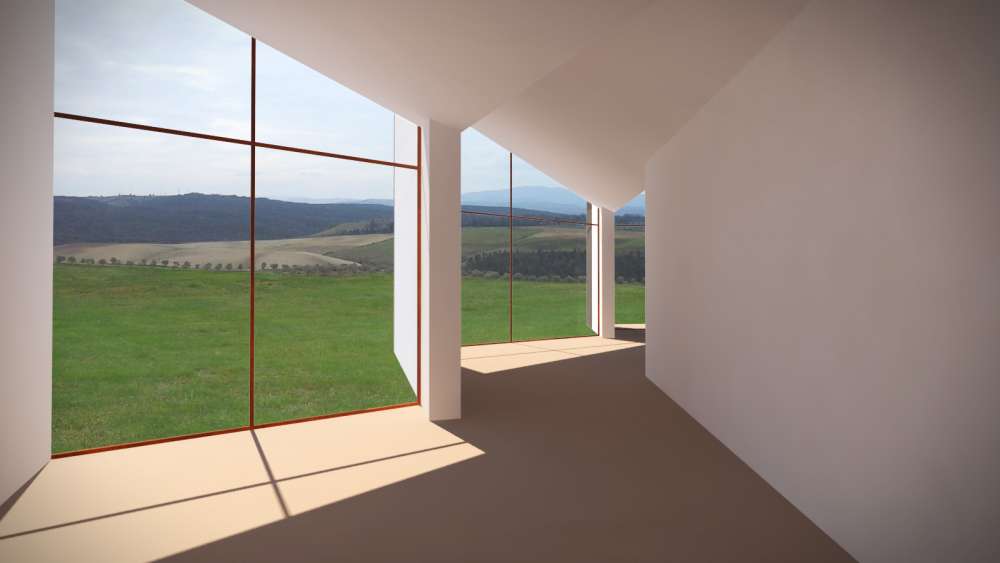 Un'area completamente aperta e al culmine di una dolce collina che scruta il Tirreno in lontananza, accoglie una tenuta agricola appena riconvertita ad accoglienza di alto livello. I proprietari, intendono ritirarsi in un ambiente "altro" che evidentemente stacchi dalla compattezza rigorosa del volume storico. Ecco pertanto nascere, riprendendo le linee classiche dei paesaggi toscani ricchi di linee oblique e disassamenti davanti/dietro, il progetto della nuova residenza padronale. Intorno ad un ambiente centrale di vita, si affiancano gli altri ambienti essenziali, mentre il collegamento tra l'esistente ed il nuovo viene trattato con strutture a vetro tali da non impedire la visione della struttura muraria originale: quasi una "galleria" trasparente che permette scorci visivi inusuali verso ogni lato e dando slancio e importanza all'ingresso. Forme e volumi contrastanti ma che non intaccano ma anzi gratificano il vissuto consolidato dei luoghi.