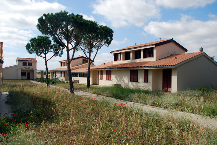 Demolizione di una struttura poderale e successiva ricostruzione con la realizzazione di 12 appartamenti indipendenti, ognuno dotato di giardino e posto auto. Il tema era quello di riuscire a progettare il nuovo insediamento con un disegno planimetrico che tenesse conto di una buona distribuzione planimetrica con un livello di aggregazione abitativa non dispersiva e cercando di mantenere intatte tutte le importanti alberature esistenti e realizzando al contempo la ricostruzione dei fabbricati su parte del sedime precedentemente occupato dalle strutture esistenti, vincolo imposto dai regolamenti locali. Architettonicamente si è optato per la realizzazione di fabbricati bassi con sviluppo prevalente a piano terra, con alcuni elementi volumetrici al piano primo al fine di non appiattire eccessivamente i fabbricati e rendendoli affini alle abitazioni poderali presenti in zona. L'uso di intonaci tradizionali, coperture in cotto, infissi in legno e colori terrosi è stato imposto dagli attuali regolamenti locali. Progettazione architettonica e direzione lavori.